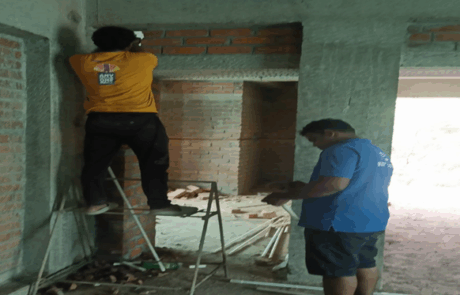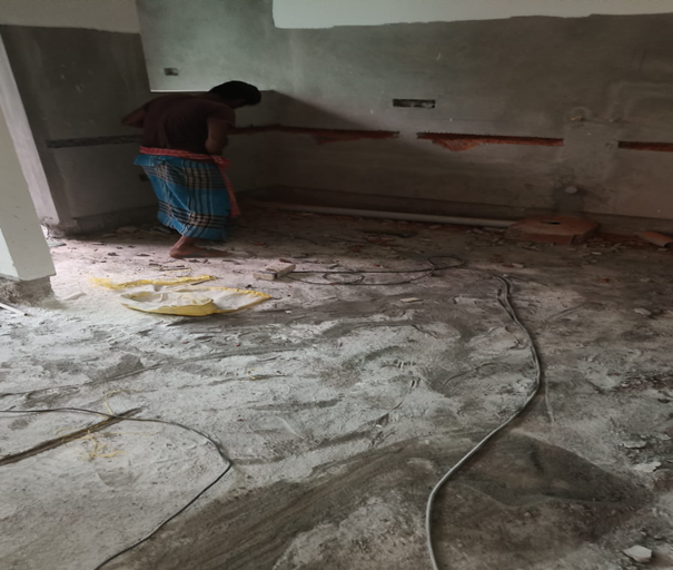 Fourth floor electrical wall chipping work in progress