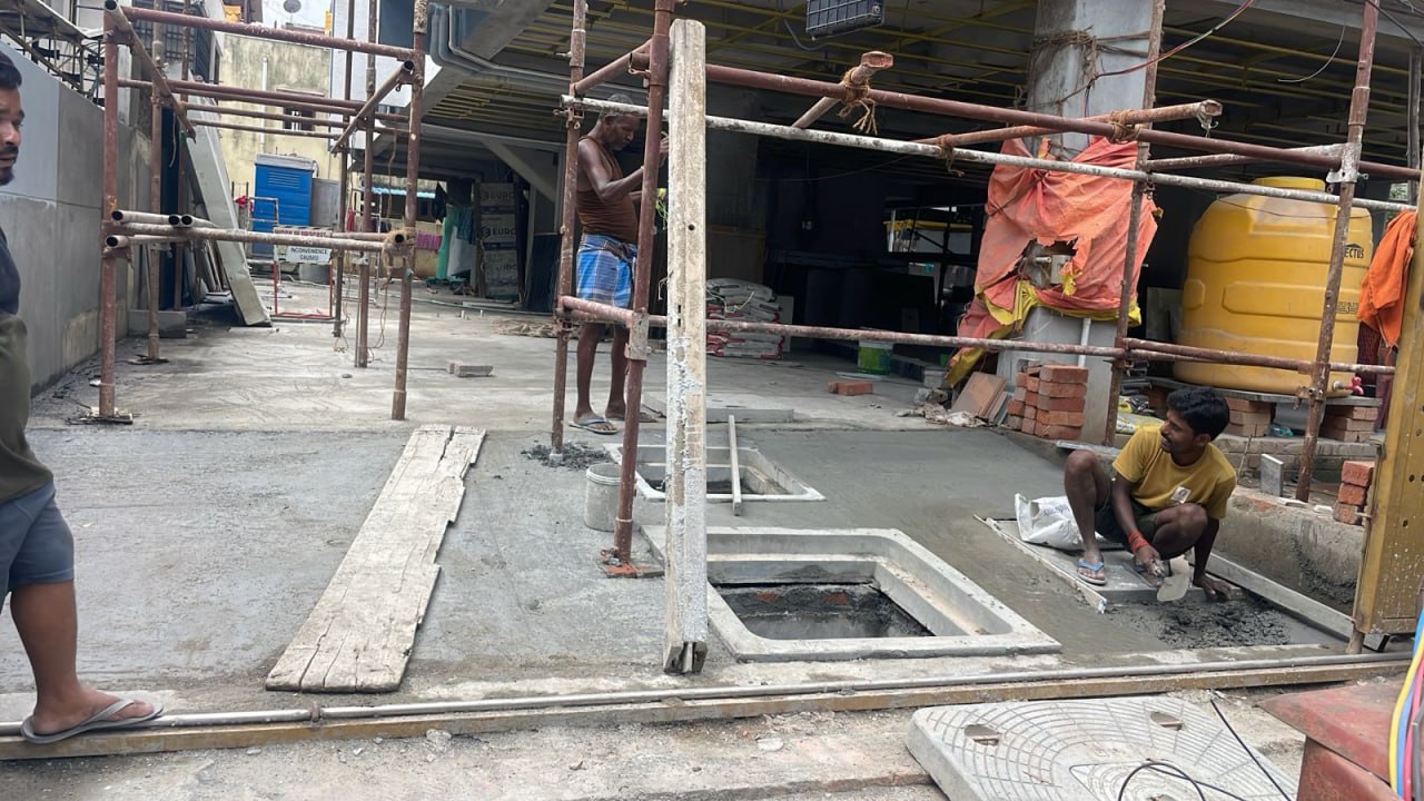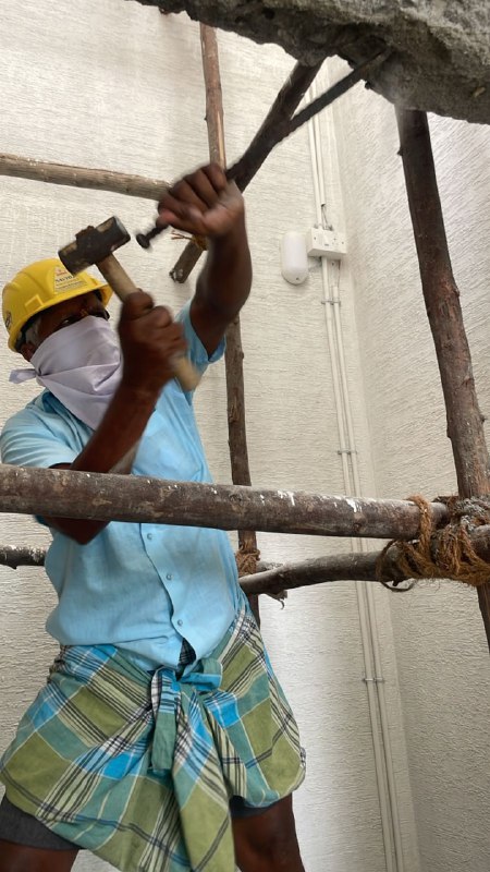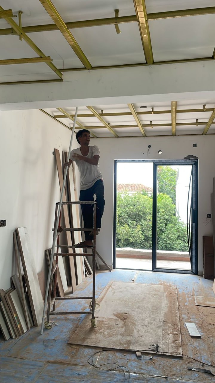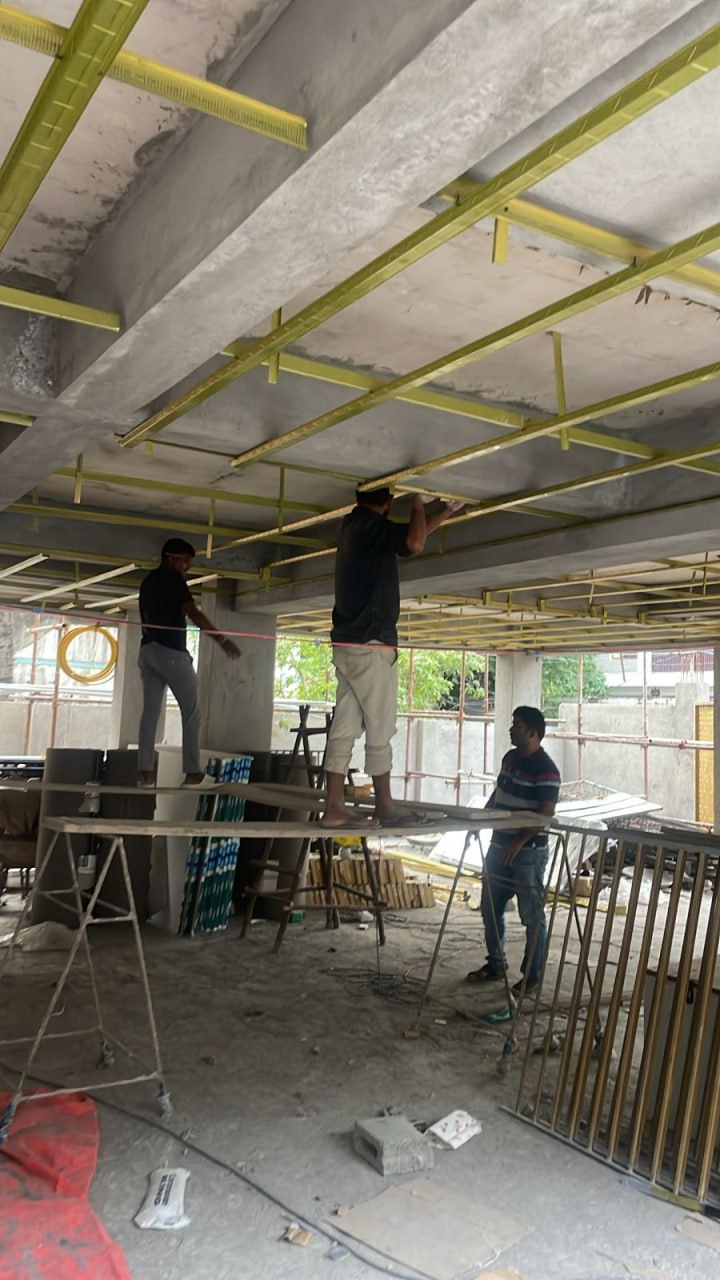Stilt floor false ceiling Chanel fixing work in progress